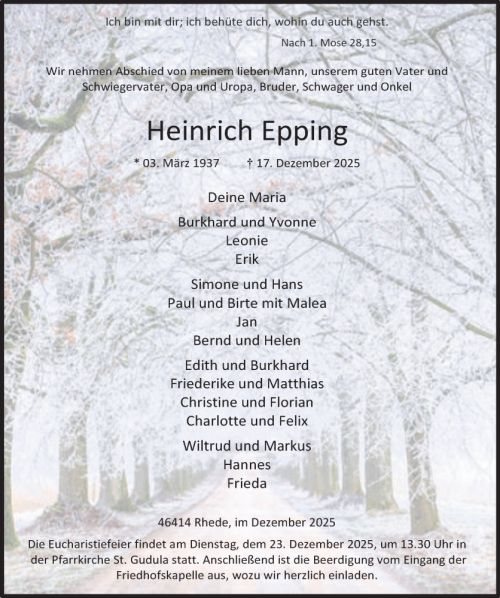 Mit großem Bedauern müssen wir vom Tod eines unserer letzten Gründungsmitglieder berichten. Heinrich Epping ist im Alter von 88 Jahren nach 68jähriger treuer Mitgliedschaft in der DJK Rhede 57 e.V. verstorben.